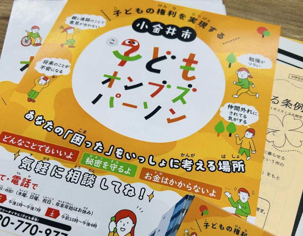 小金井市には子どもの権利に関する条例と、子どもオンブズパーソン設置条例施行規則とがあります。オンブズパーソンは「救済に取り組む」ことと、市の機関がオンブズパーソンに協力することが義務づけられているため、子どもの味方になって、働きかけてくれる大人がいることが心強く、相談しようというモチベーションにもつながるものと思って、憧れてきました。