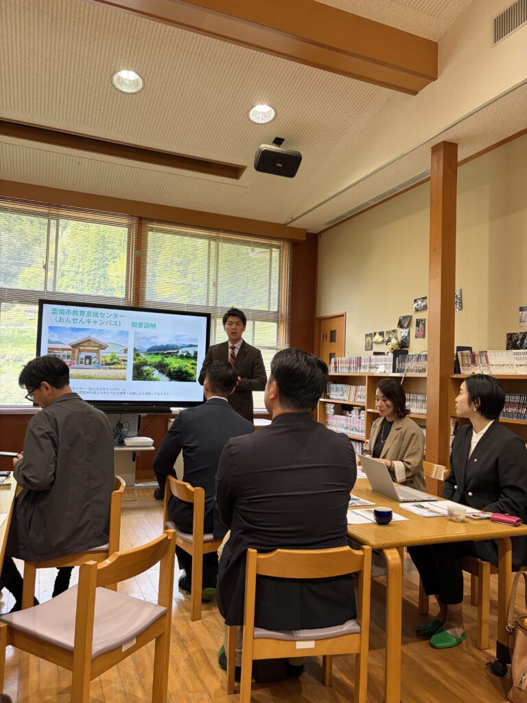 島根県雲南市の教育支援センター「おんせんキャンパス」を視察訪問しました。私が理事メンバーとして所属している、学びの多様化地方議員連盟 による主催で、島根県議会議員のお二人が中心となって調整してくださいました。ありがとうございます。