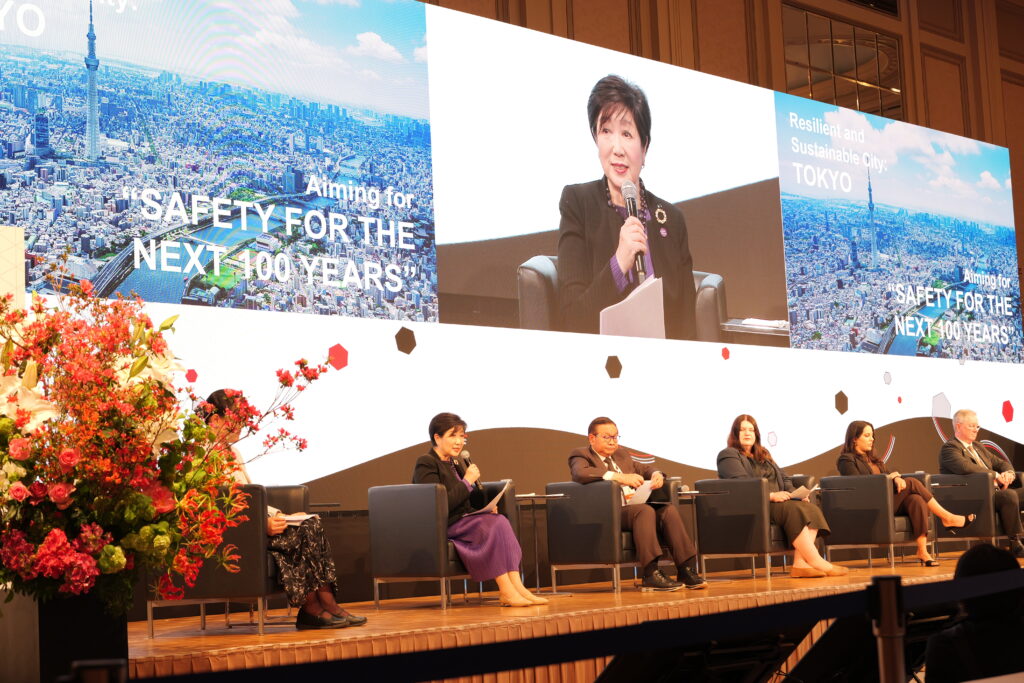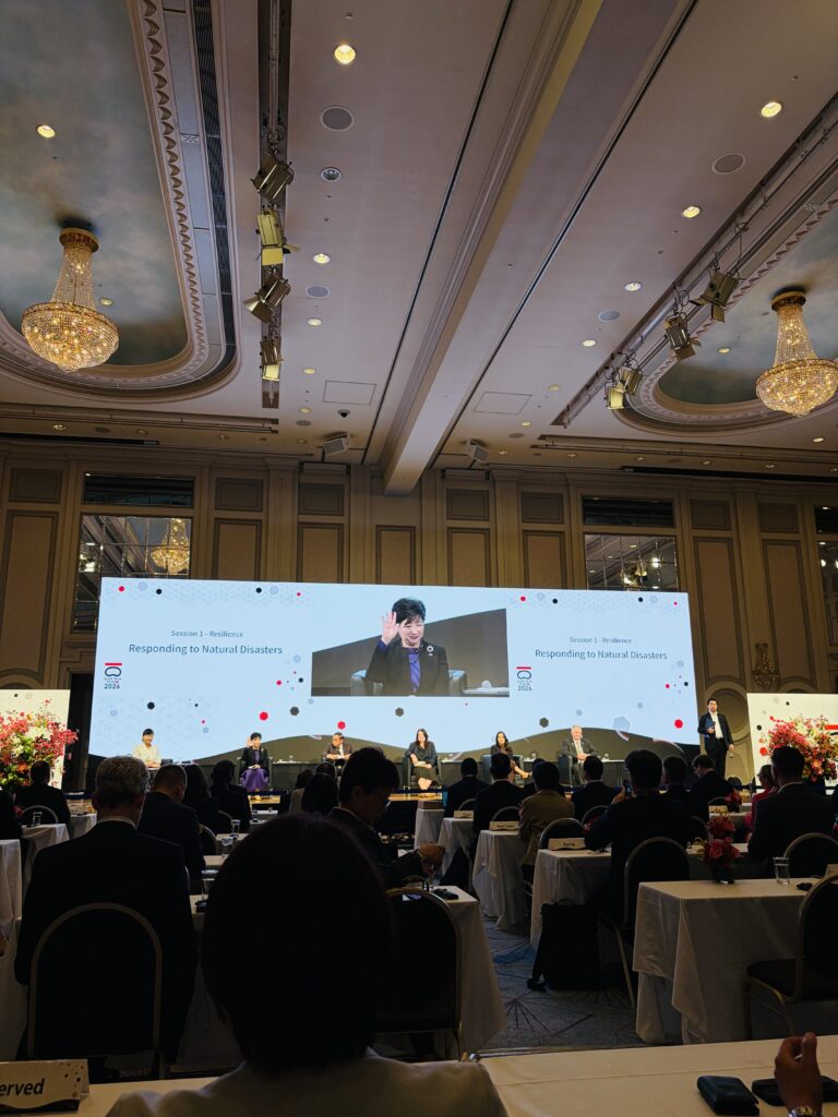 本日は都知事が出席された首長級会議を傍聴させていただきました。自然災害への対応をテーマに、グラスゴー、ジャカルタ、ロサンゼルス、モートンベイと東京の取り組み事例の紹介と、質疑応答がありました。都知事からは、防災アプリを40か国語に対応させて、パニックへの備えとしている事例が紹介されました。各国、各地における、洪水や大規模火災などへの対応と、地域のアクション、計画への反映といった取り組みが伝えられました。セッションは明日まで続き、29日には視察も予定されているとのことで、都の取り組みの理解を深めていただける機会になると思います。